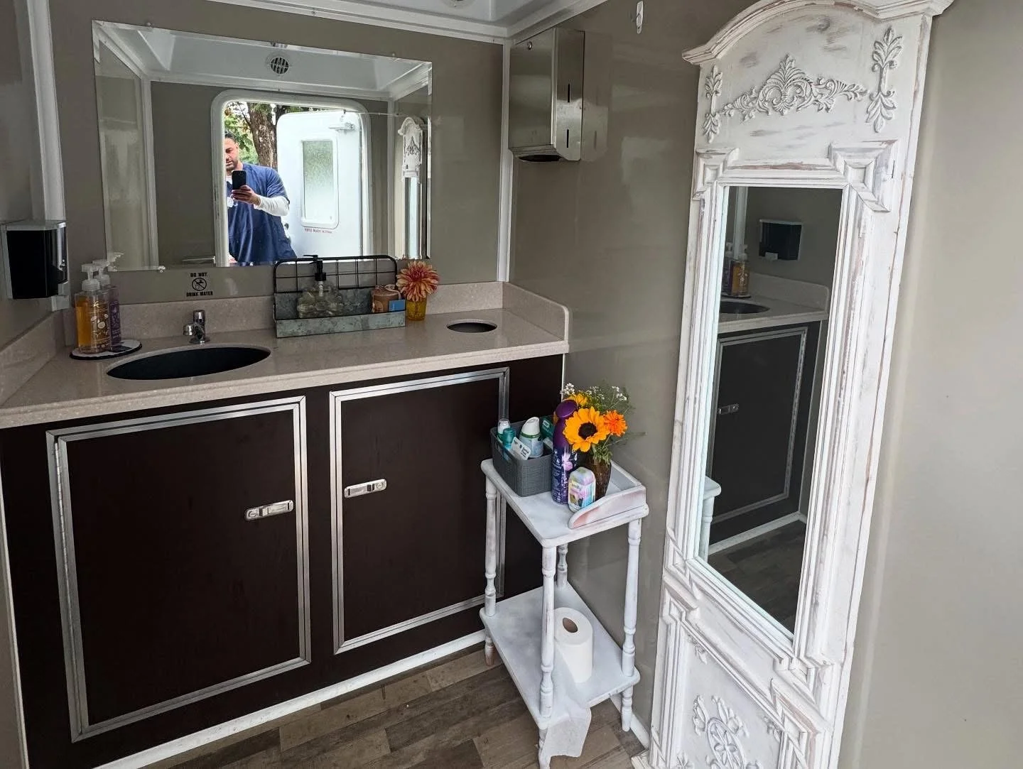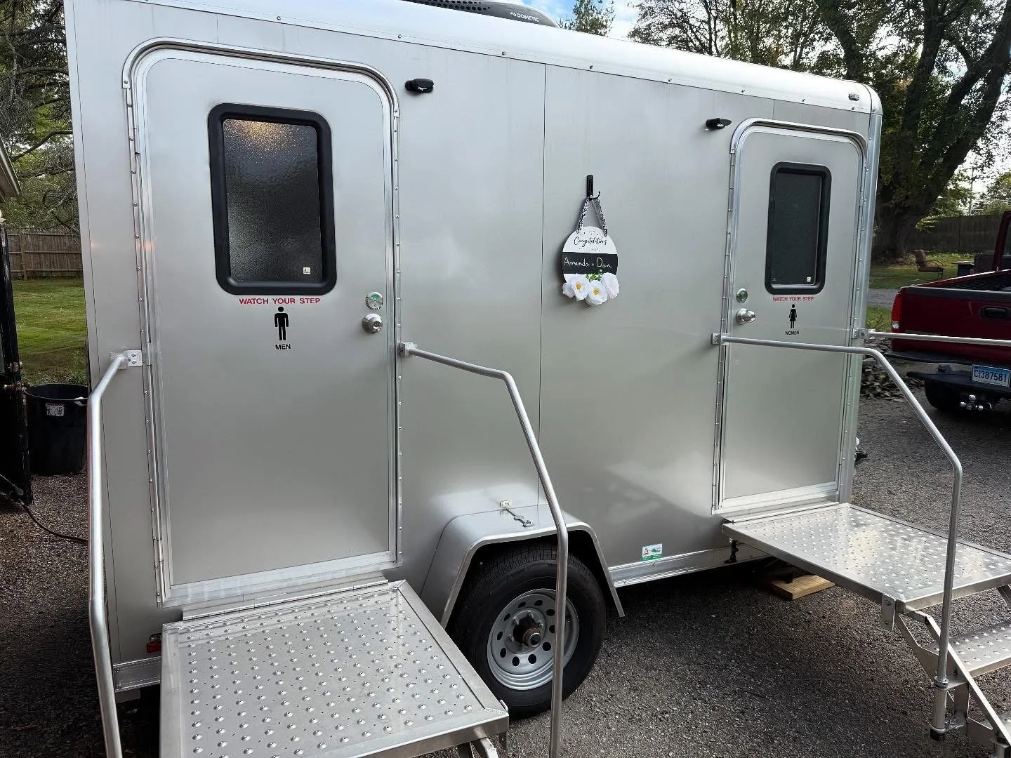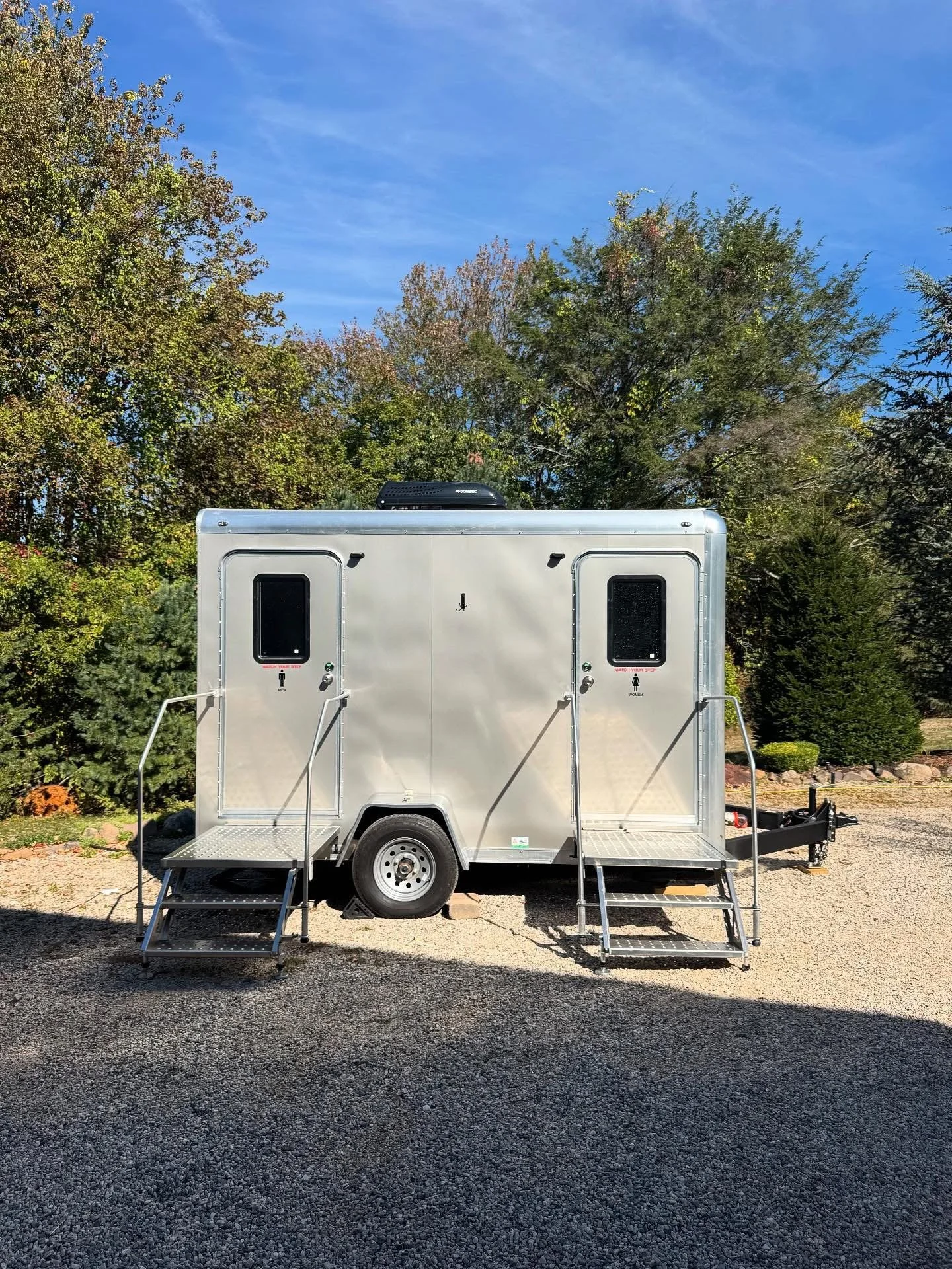 At Honey Hill Luxury Lavatories, We are dedicated to providing an unparalleled experience that combines elegance, comfort, and convenience. Our Elegant Two-Stall Restroom Suite is thoughtfully designed to elevate outdoor events, from weddings to private parties, ensuring every guest feels valued with a touch of luxury. We aim to redefine portable restroom services with superior service and exceptional quality, creating a seamless blend of sophistication and practicality for any occasion.