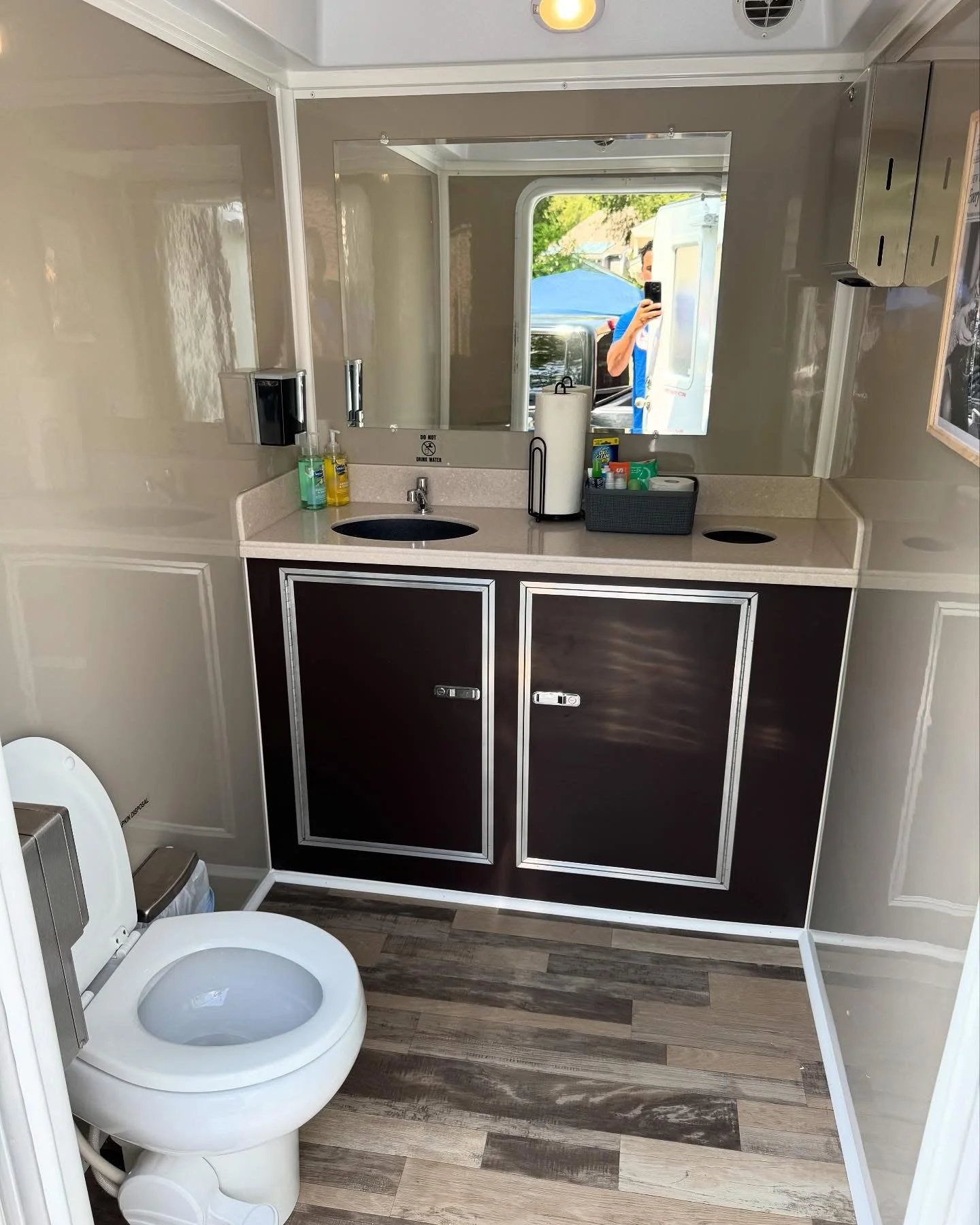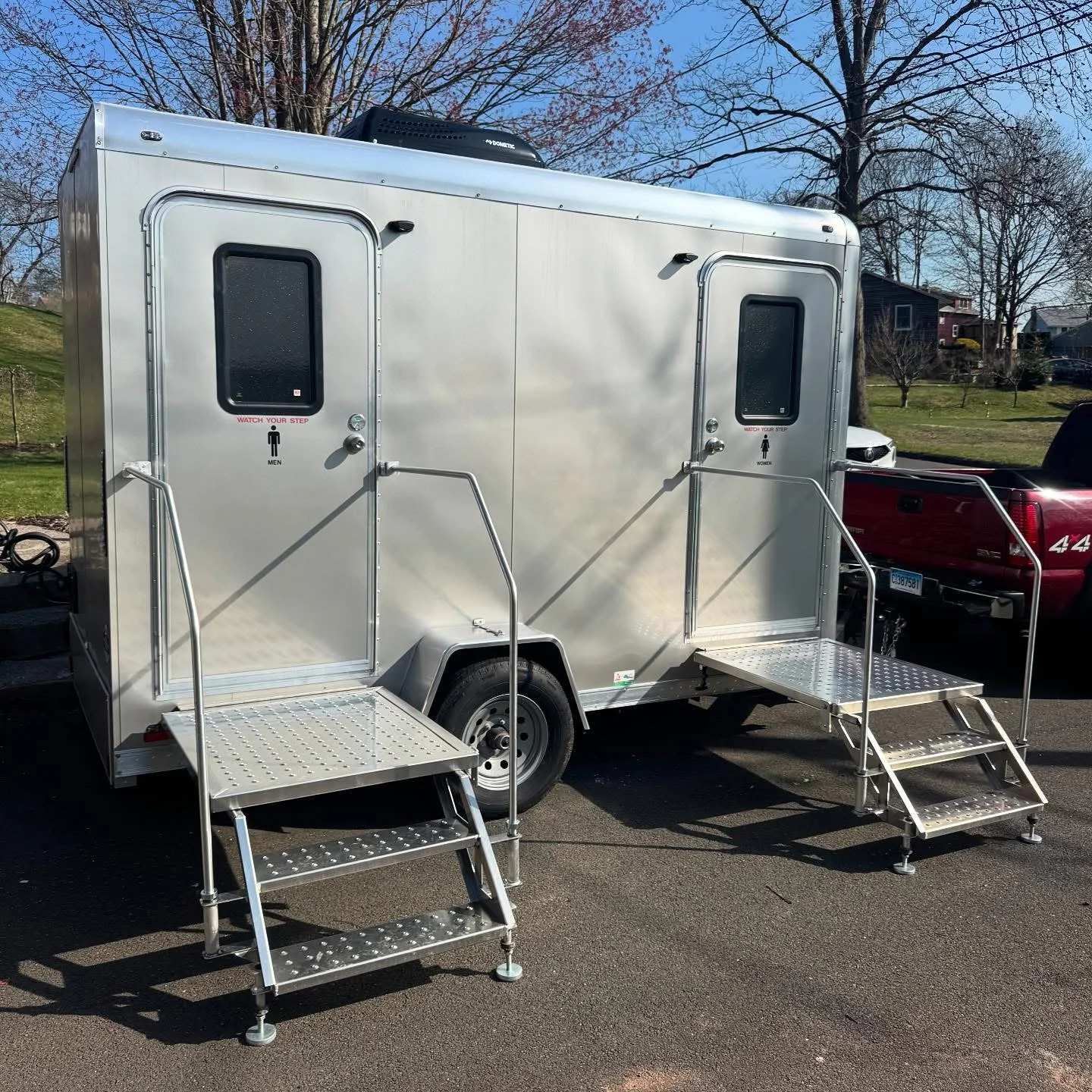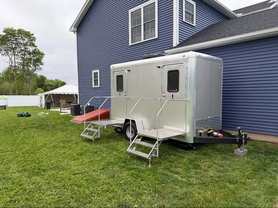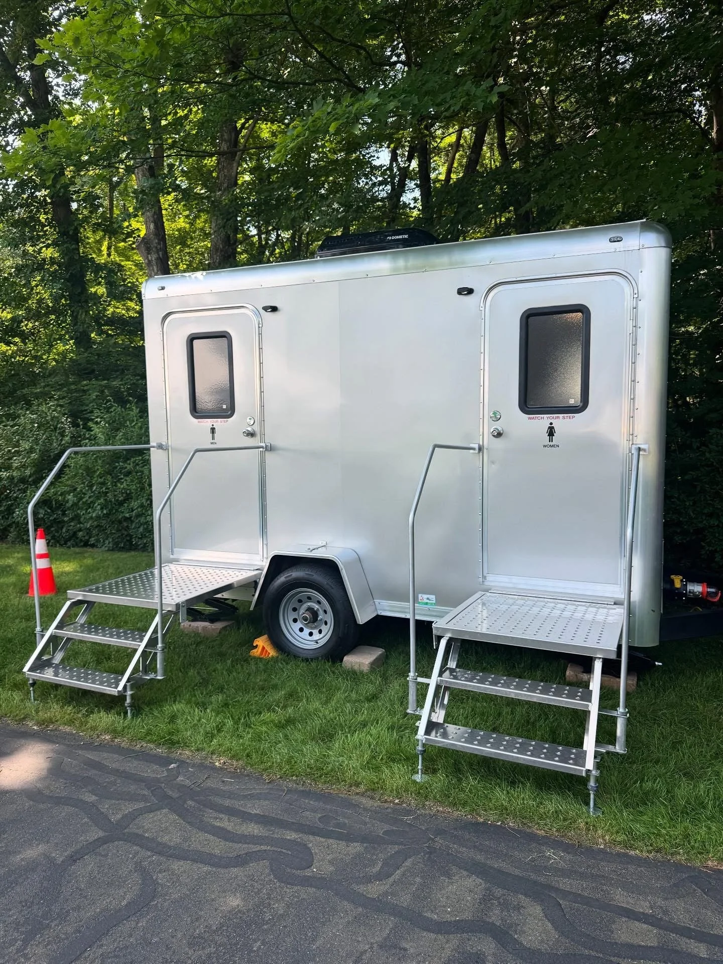 At Honey Hill Luxury Lavatories, We are dedicated to providing an unparalleled experience that combines elegance, comfort, and convenience. Our Elegant Two-Stall Restroom Suite is thoughtfully designed to elevate outdoor events, from weddings to private parties, ensuring every guest feels valued with a touch of luxury. We aim to redefine portable restroom services with superior service and exceptional quality, creating a seamless blend of sophistication and practicality for any occasion.